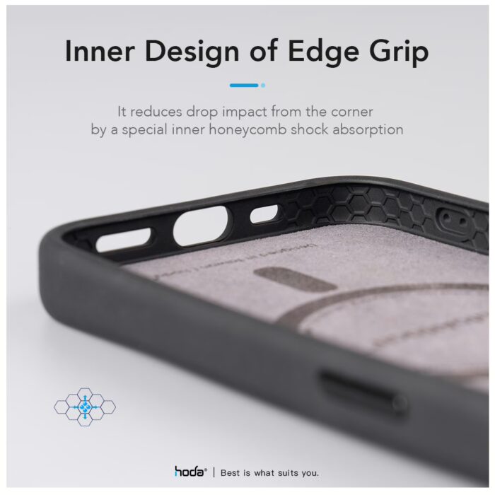 - ดีไซน์ขอบเคสด้านในแบบรังผึ้ง เพื่อช่วยลดแรงกระแทกจากการตกด้วยการดูดซับแรงกระแทก