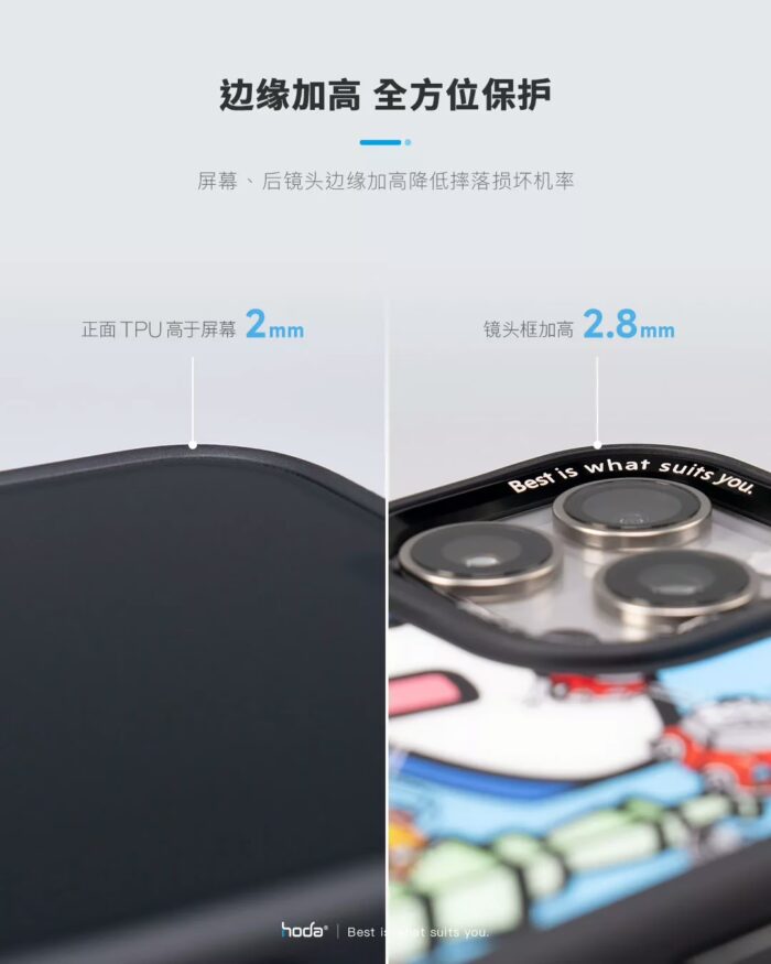- ขอบเคสหน้าจอยกสูง 2 มม. ขอบเลนส์กล้องยกสูง 2.8 มม. และมุมเคสด้านหลังทั้งสี่มุมยกสูง 3.2 มม. เพื่อป้องกันรอยขีดข่วนและการตกกระแทก