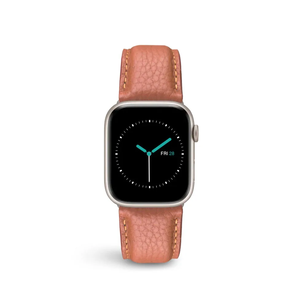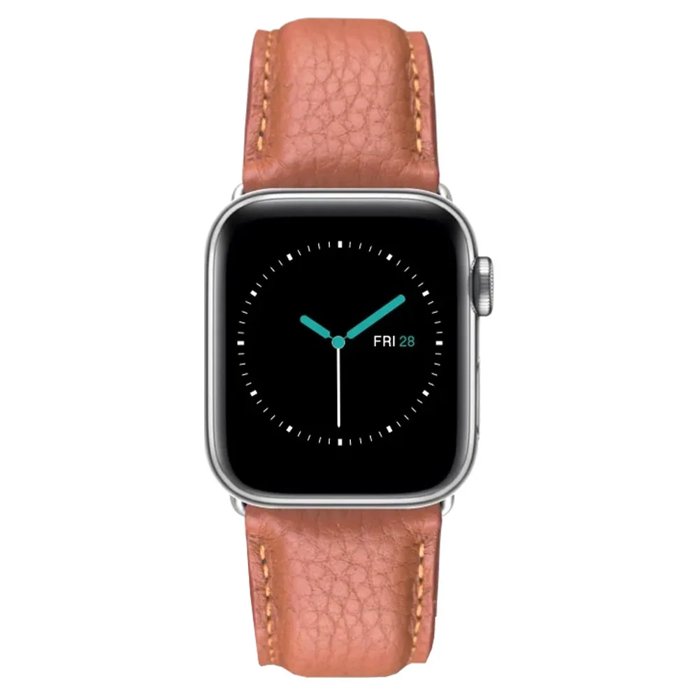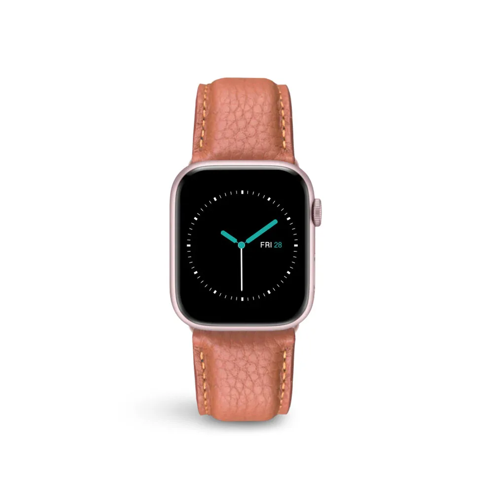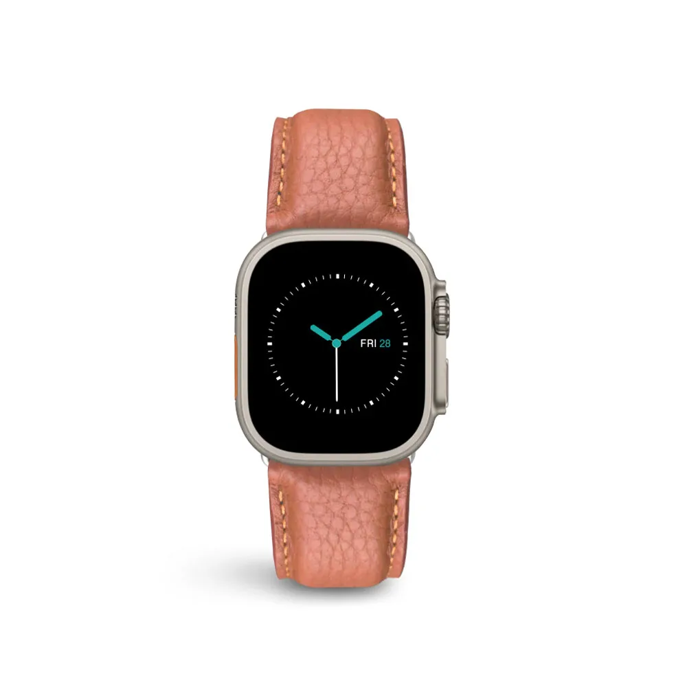 MINTAPPLE. รุ่น Signature Top Grain Leather – สายนาฬิกา Apple Watch 42(3)/44/45/46/49mm – สี PEACHY/Stainless steel Silver