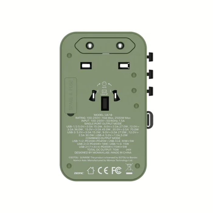 - ที่ชาร์จแบบพกพาอเนกประสงค์พร้อมปลั๊กในตัวสำหรับ JP/US, AU, EU และ UK