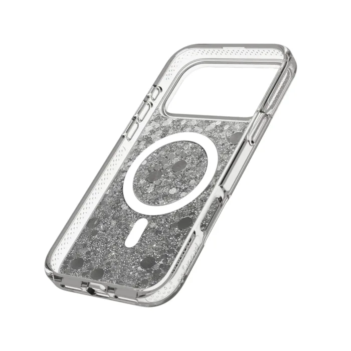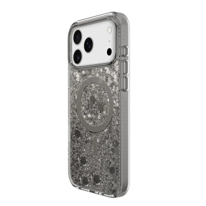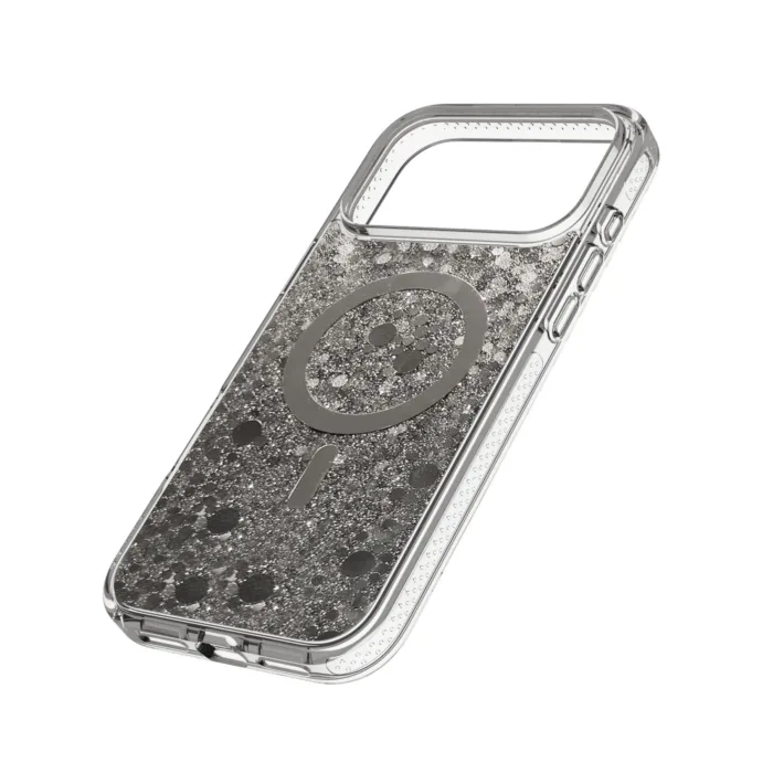 - ด้านหลังใสโชว์ตัวเครื่อง iPhone ชัด แต่ยังเก๋ด้วยลวดลาย glitter เต็มด้าน ไม่ใช่แค่เคสใสธรรมดา