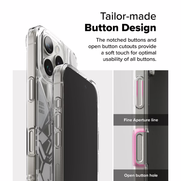 เคส Ringke รุ่น Fusion Design ปกป้อง iPhone ของคุณด้วยเคสไฮบริดสีใสสไตล์มินิมอลที่มีลวดลายเป็นเอกลักษณ์ ตัวเคสทำจากวัสดุ TPU + PC การออกแบบที่บางและน้ำหนักเบา แต่ยังช่วยดูดซับแรงกระแทก มาพร้อมการปกป้องและประสิทธิภาพในการกันกระแทกระดับ MIL-STD-810G 516.6 มาพร้อมกับรูคล้อง Duo-QuikCatch สำหรับใช้กับอุปกรณ์เสริม เช่น เชือกคล้องข้อมือ, ที่ห้อยโทรศัพท์สำหรับคล้องสาย รองรับระบบการชาร์จแบบไร้สาย (Wireless Charging Compatible)