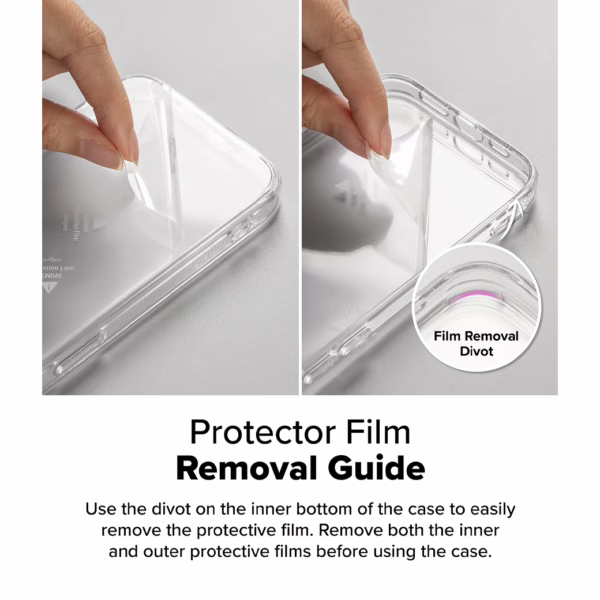 • ข้อแนะนำ: มีแผ่นฟิล์มใสอยู่ด้านในและด้านนอกของเคส ควรลอกแผ่นฟิล์มออกก่อนใส่เครื่องเข้าไปเพื่อใช้งาน