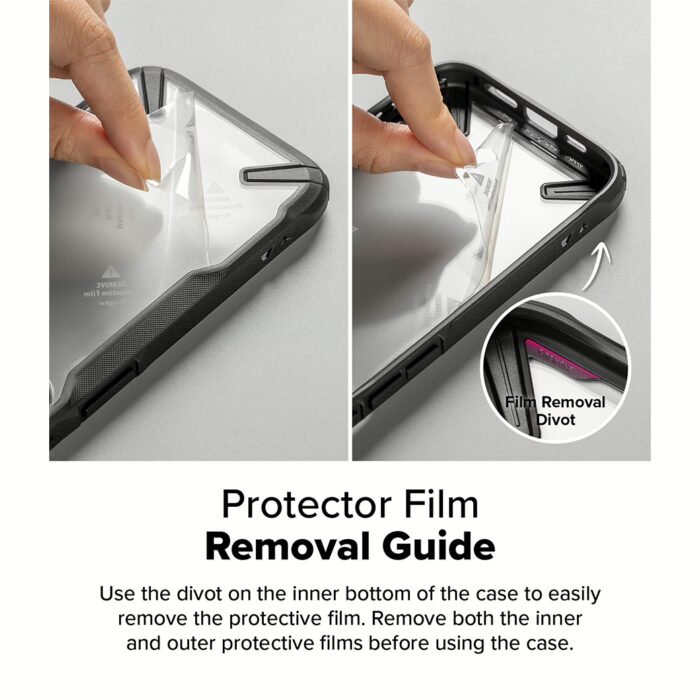 - ข้อแนะนำ: มีแผ่นฟิล์มใสอยู่ด้านในและด้านนอกของเคส ควรลอกแผ่นฟิล์มออกก่อนใส่เครื่องเข้าไปเพื่อใช้งาน
