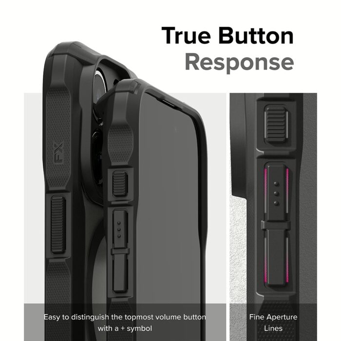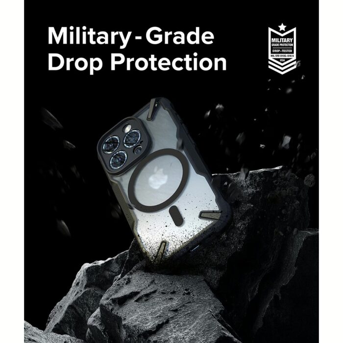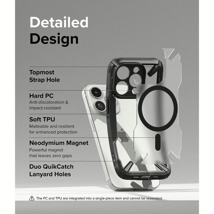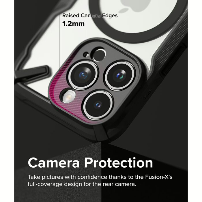 เคส Ringke รุ่น Fusion X ทำจากวัสดุ TPU + PC เคสไฮบริดที่ออกแบบโดย X-Concept แบบไม่ซ้ำใคร พร้อมการปกป้องและประสิทธิภาพในการกันกระแทกระดับ MIL-STD-810G 516.6 มาพร้อมกับรูคล้อง Duo-QuikCatch สำหรับใช้กับอุปกรณ์เสริม เช่น เชือกคล้องข้อมือ, ที่ห้อยโทรศัพท์สำหรับคล้องสาย ตัวเคสรองรับการใช้งานร่วมกับอุปกรณ์เสริม MagSafe
