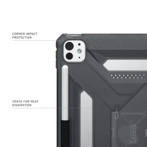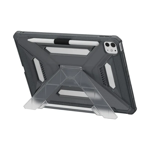 - มุมกันกระแทกแบบเสริม ที่ขอบมุมถูกเสริมด้วย bumper เพื่อดูดซับแรงเมื่อ iPad ตก ลดโอกาสหน้าจอหรือบอดี้เสียหายจากการตกหรือแรงกระแทก