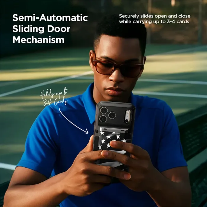 - ดีไซน์ Semi-Automatic Slide Door ฝาหลังเลื่อนเรียบเนียน เก็บบัตรได้สูงสุด 4 ใบ ใช้งานจริงได้ทุกวัน ทั้งบัตรเครดิต, บัตรพนักงาน หรือบัตรเดินทาง ที่ไม่ต้องพกกระเป๋าสตางค์แยกให้เกะกะ