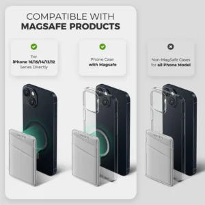 MagSafe หรือ Magnetic ของโทรศัพท์มือถือได้อย่างลงตัว ช่วยให้คุณพกบัตรสำคัญติดกับตัวเครื่องโดยไม่ต้องพกกระเป๋าสตางค์ใหญ่ ตอบโจทย์สาย Minimal ที่ต้องการเพียงบัตรหลักไม่กี่ใบและความสะดวกในการใช้งานทุกวัน