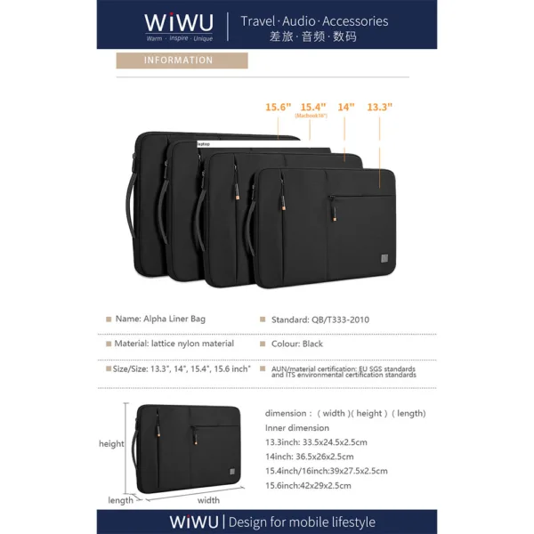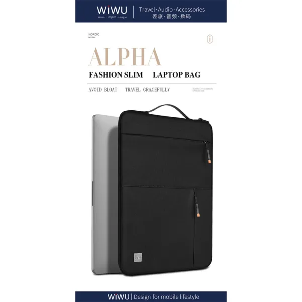 WiWU รุ่น Alpha Slim Sleeve – ซองใส่ Laptop/MacBook ขนาด 15.6″ – สี Black