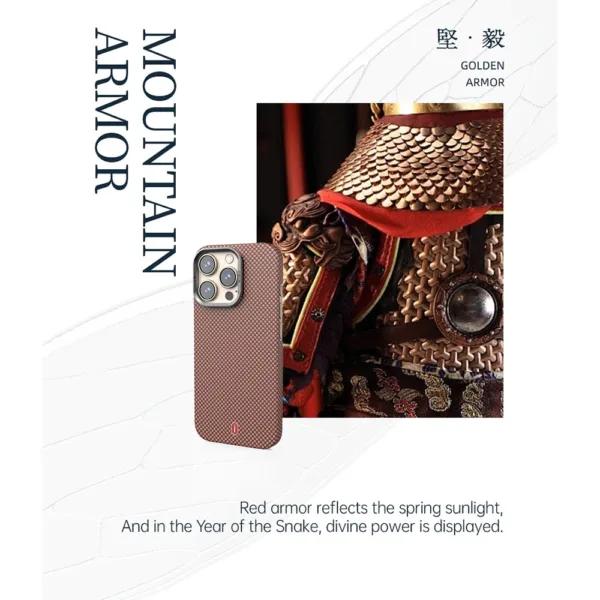 • วัสดุ Aramid Fiber 600D ที่มีความแข็งแรงสูง ที่ให้ความรู้สึกกันกระแทกและกันรอยได้จริง เวลาใช้งานจับถือจริงจะรู้สึกถึงความทนและไม่พร่องเมื่อโดนของกระแทกหรือขีดข่วน
