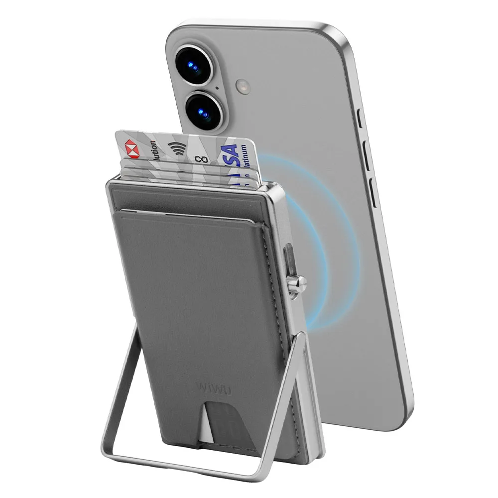 WiWU รุ่น Regal Magsafe Metal Stand Card Holder – ที่เก็บบัตรและขาตั้งติดหลังมือถือ – สี Grey