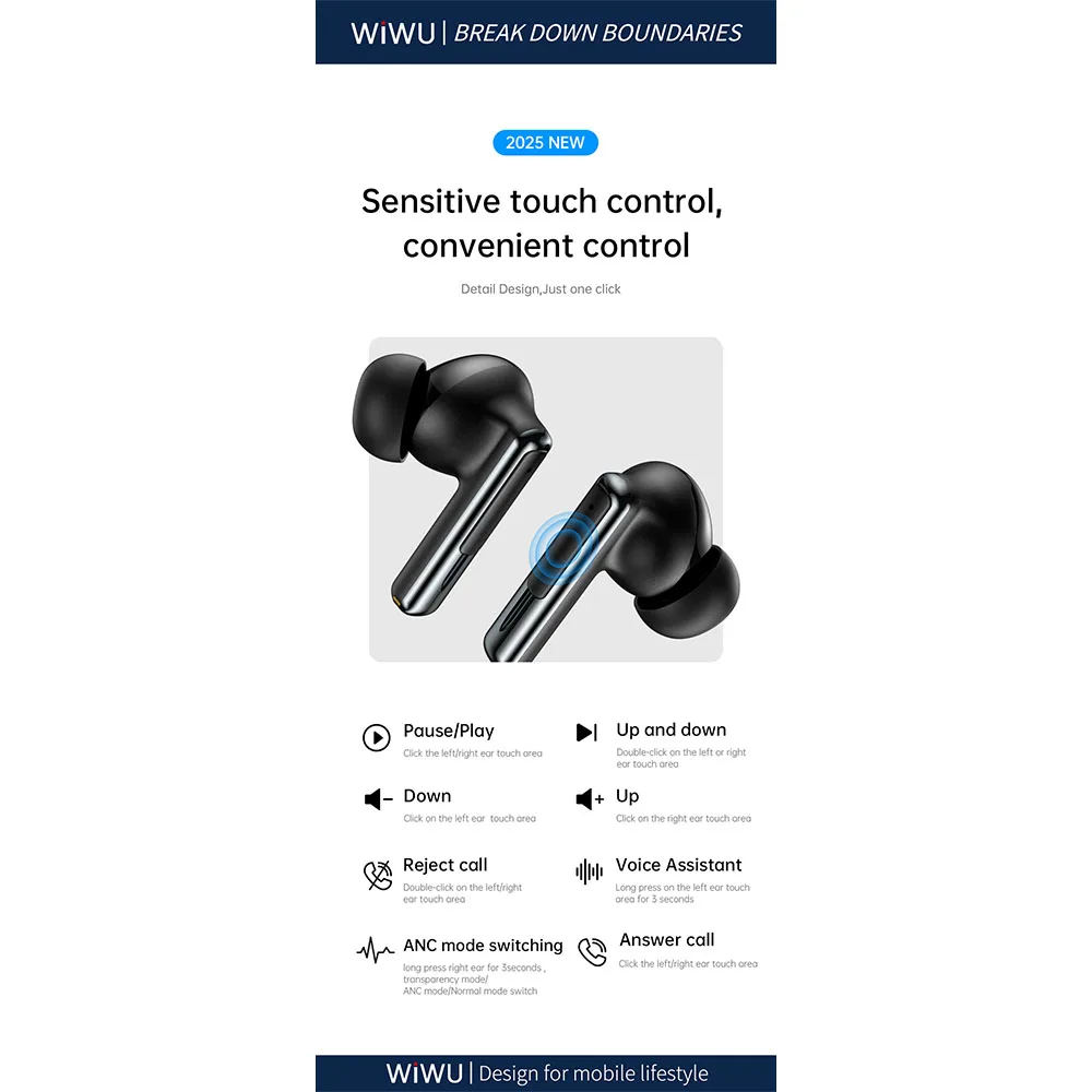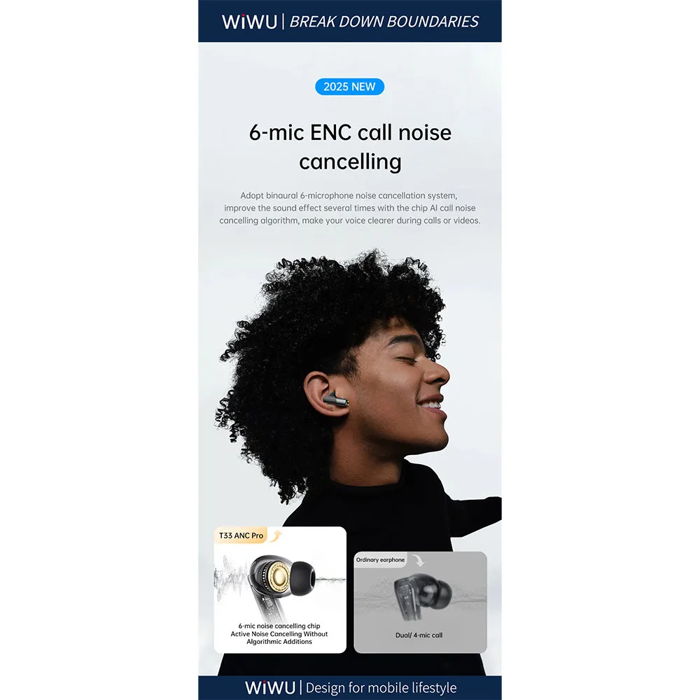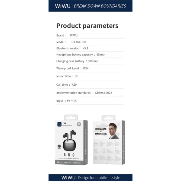 WiWU รุ่น T33 ANC Pro – หูฟังไร้สาย – สี Black