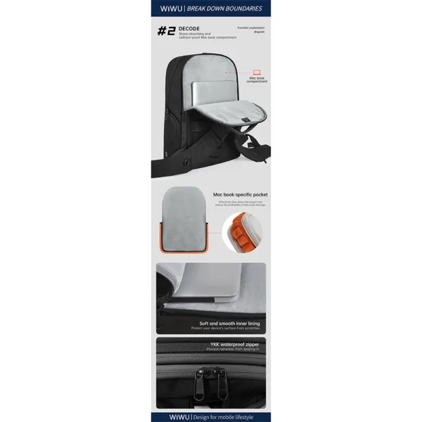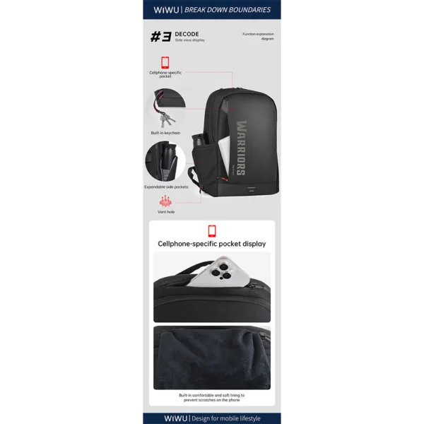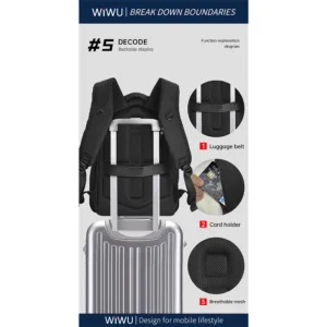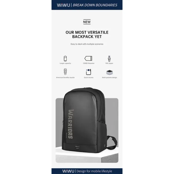 WiWU รุ่น Warriors Backpack X Pro – กระเป๋าเป้สะพายหลัง – สี Black